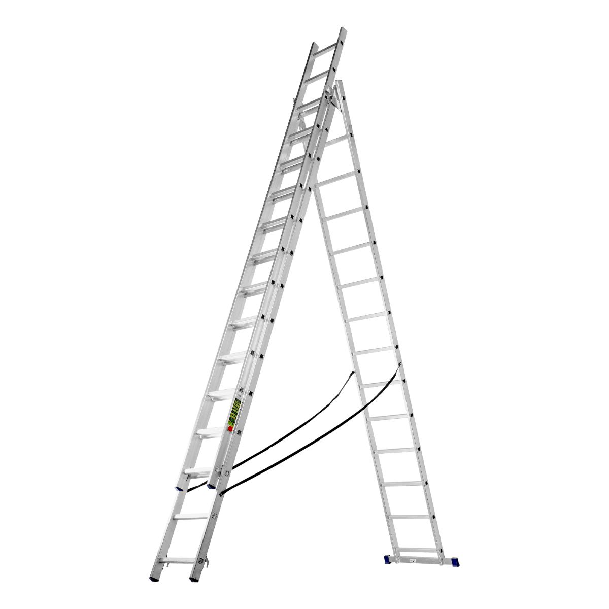 - Универсальная трехсекционная лестница. Предназначена для проведения высотных работ. Может использоваться как приставная лестница, так и стремянка. Материал: алюминевый профиль (62х23мм) с пластиковыми антискользящими упорами.